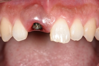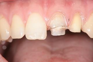 • 【治療前】前歯が折れて来院されました。折れた歯は抜歯することになりました。歯を削らずにできるだけ自然な回復を望まれました。(30代女性)
