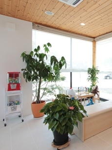 『明るく、温かく、病院らしくない』をコンセプトにガラス面を多く採用して、自然光が入り込む明るい優しい落ち着いた雰囲気の空間にしました。歯科医院独特の薬の匂いがしない、やさしいアロマの香りが漂います。